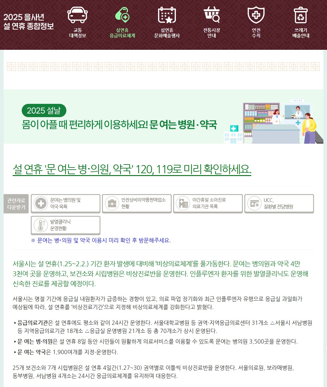 2025 설 연휴, 서울에서 문 여는 병원·약국 총정리